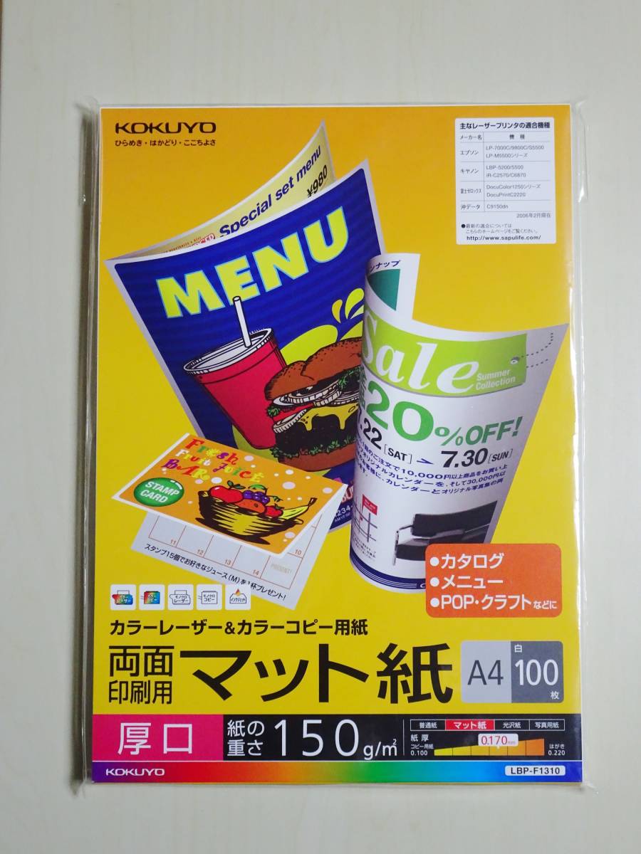 - ☆【送料無料】KOKUYO カラーLBP&カラーコピー用紙(両面印刷用・マット紙)A4 厚口150g/m2・0.17mm 100枚☆(L)