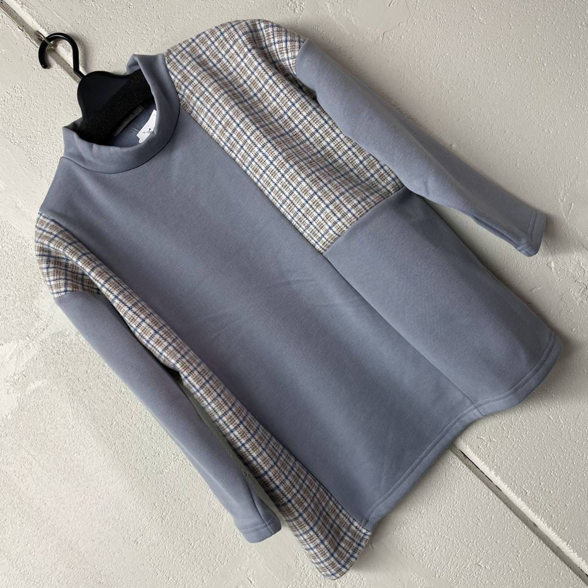 - 裏シャギー格子切り替え暖かカットソー ブルー