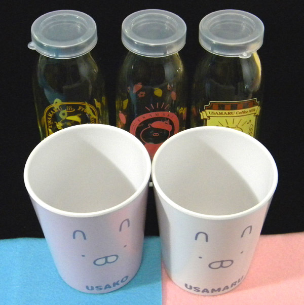 - ★ 一番くじ うさまる ★ お風呂上がりのうさまる銭湯瓶 3点 &ねむねむタイム メラミンカップ 2点
