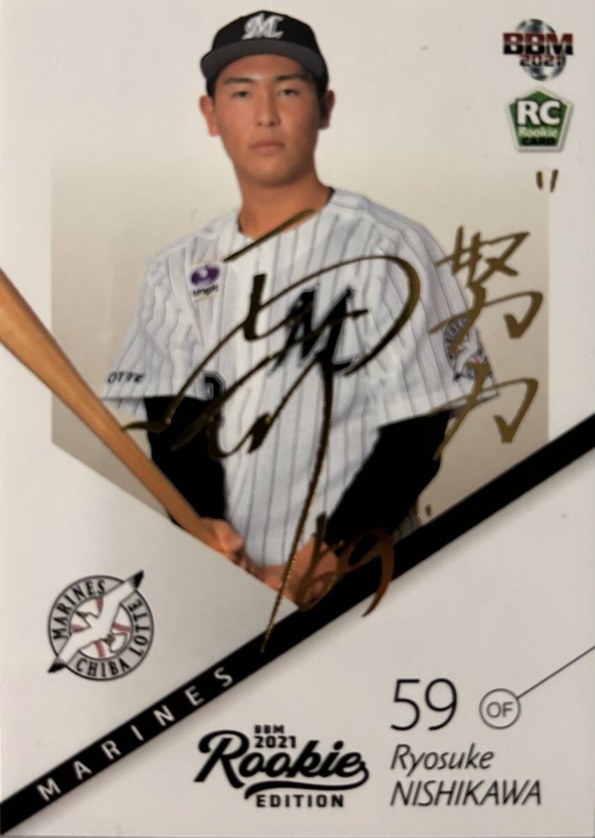 - 2021BBM ルーキーエディション ロッテ RC西川僚祐選手金箔サインカード75枚シリアル