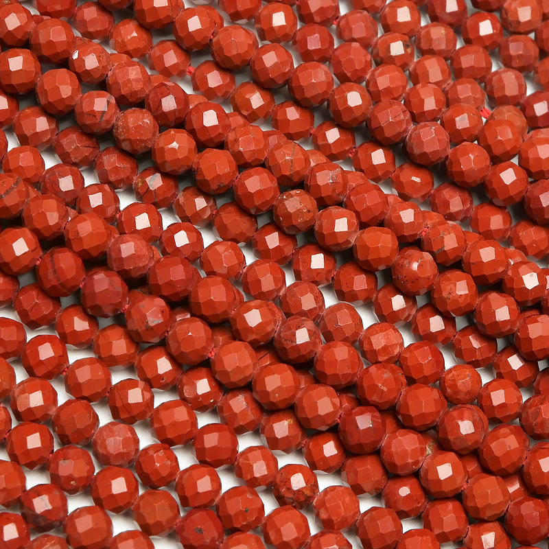 - レッドジャスパー 面カット 丸玉 3mm[プレミアムカット]【1連販売】 / 7-15 JA3MC