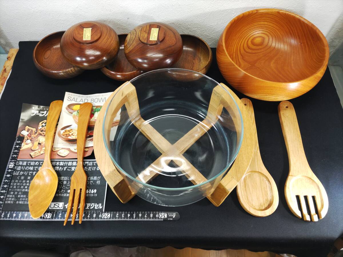 > ■送料無料!■まとめて■サラダボウル・ボール■スプーン・フォーク付き■菓子鉢■木皿■小鉢■木製■天然木■大量セット!
