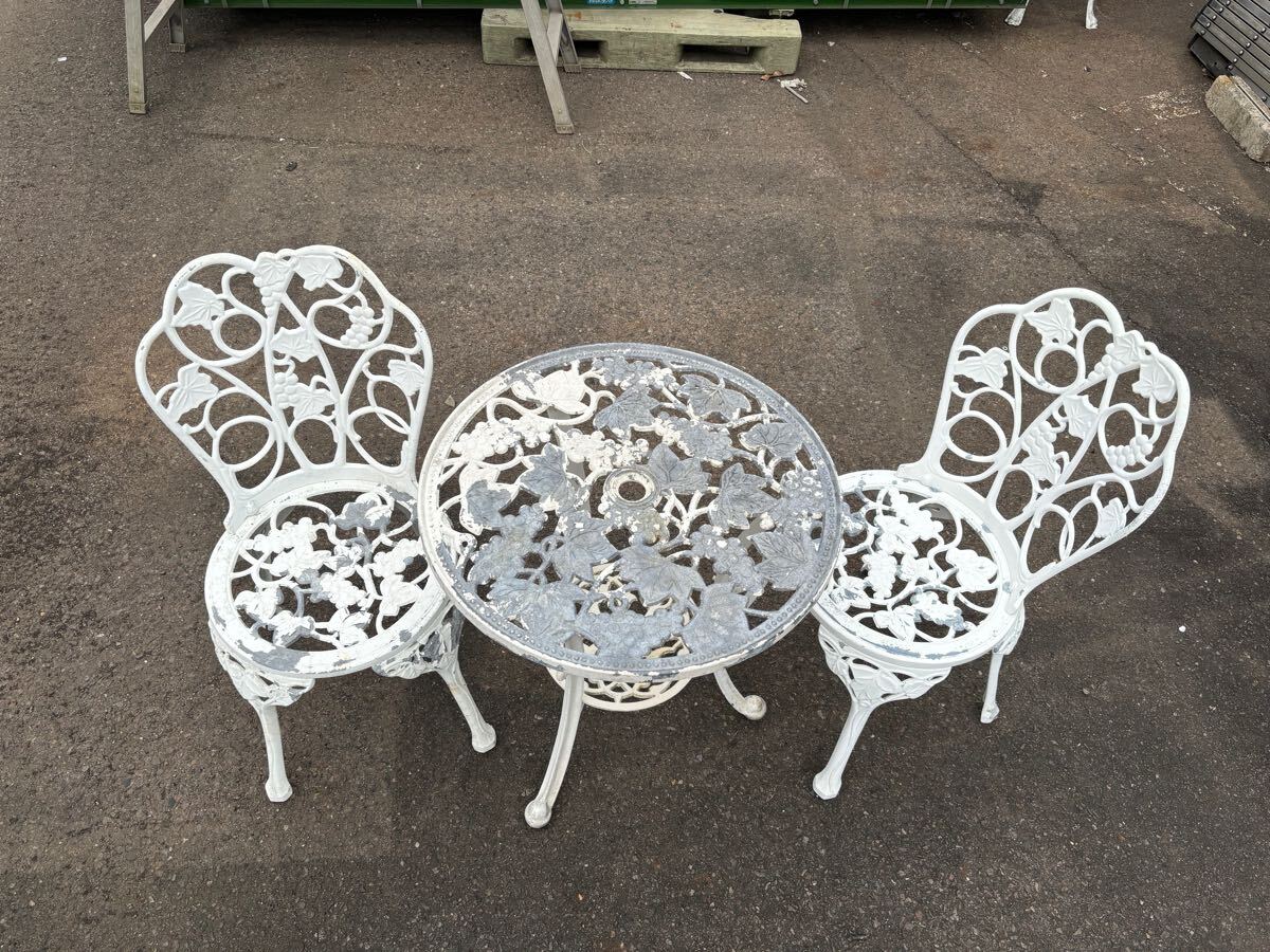 - ガーデニング アルミ鋳物 ガーデンファニチャー テーブル + チェア2脚 塗装必要