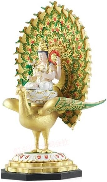 - 「81SHOP」小仏- 仏像 孔雀明王 仏像 守り本尊 除災 孔雀仏母 孔雀王母菩薩 柘植 仏像 精彫造像 (高さ17cm×巾8cm×奥行3.5cm)