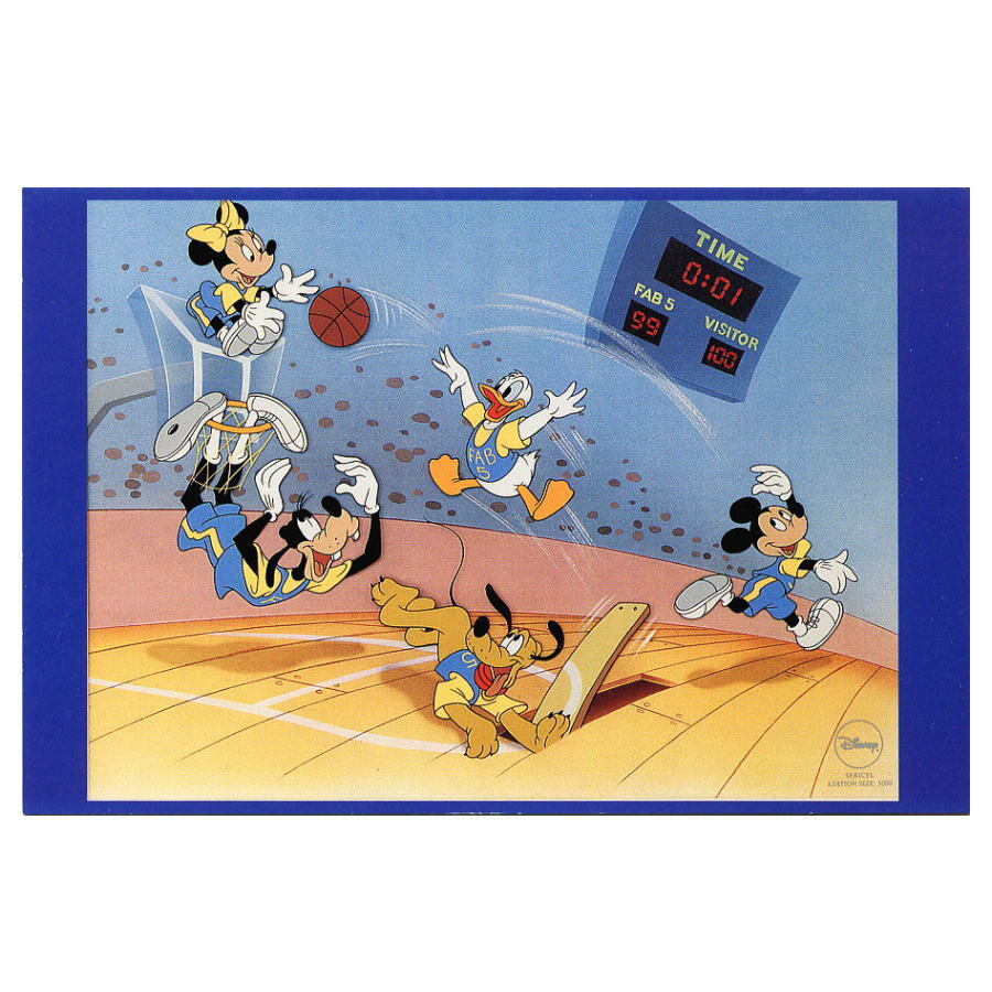 > ディズニー FAB5(バスケットボール) WDAAセル画ポストカード 『Slam Dunk with the Fub Five』 ミッキー ドナルド グーフィー