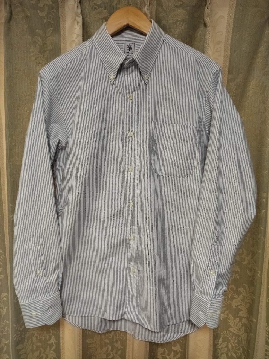 > GAMBERT CUSTOM SHIRTS OXFORD B.D. コットン ストライプ サイズ15 青白 送料無料