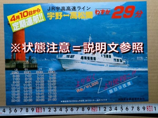 - 鉄道 チラシ JR四国 JR宇高高速ライン 宇野-高松間 定期就航 昭和63年(宇高連絡船 高速艇しおかぜ)
