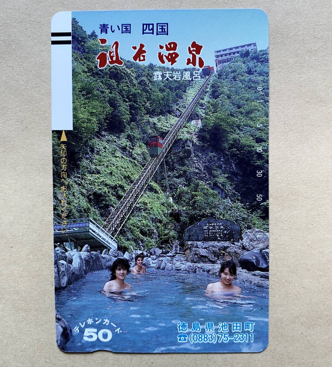 - 【未使用】 温泉テレカ 50度 青い国 四国 祖谷温泉 露天風呂