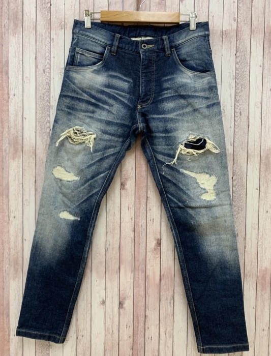 > ダブルジェイケイ wjk デニムパンツ ジーンズ ストレート ストレッチ ダメージ 裏起毛 M ブルー MK108