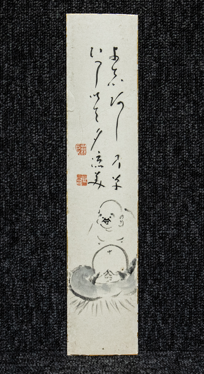 - 短冊-2048 国泰寺 稲葉心田 布袋夕涼み 幅広短冊【真作】