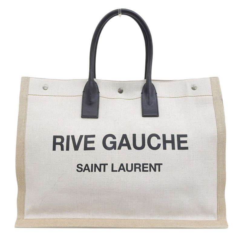 > サンローラン SAINT LAURENT リヴゴーシュ トートバッグ キャンバス/レザー グレージュ/ナチュラル/ブラック 中古 新入荷 OB2328