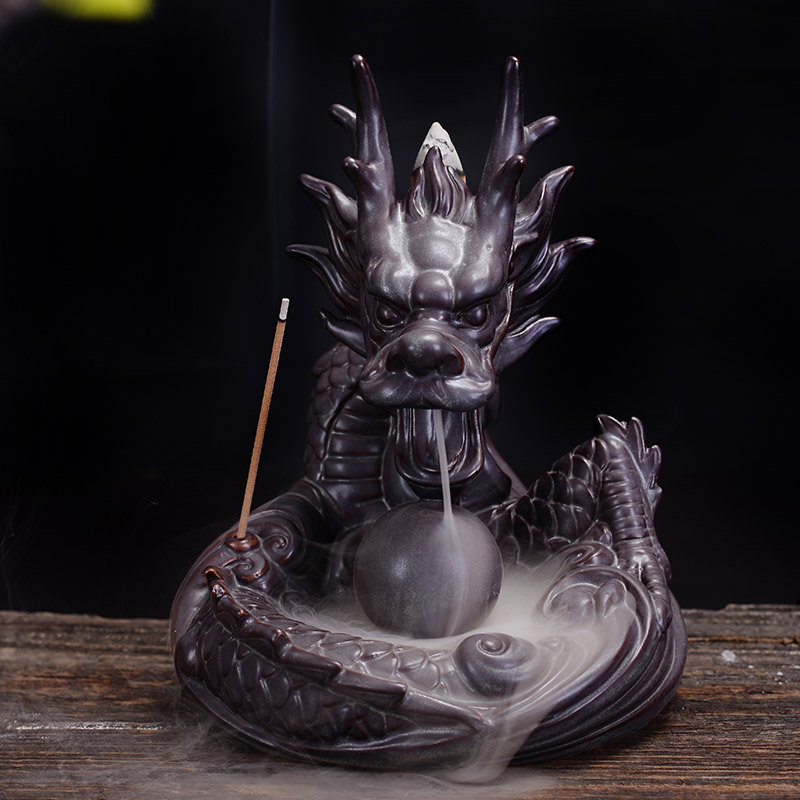 - 新入荷癒し香炉 龍の置物 お試しお香付き ドラゴン型 香炉 倒流香 セラミック 龍型 流川香 置物 開運 風水 陶芸 お香 仏壇用香炉