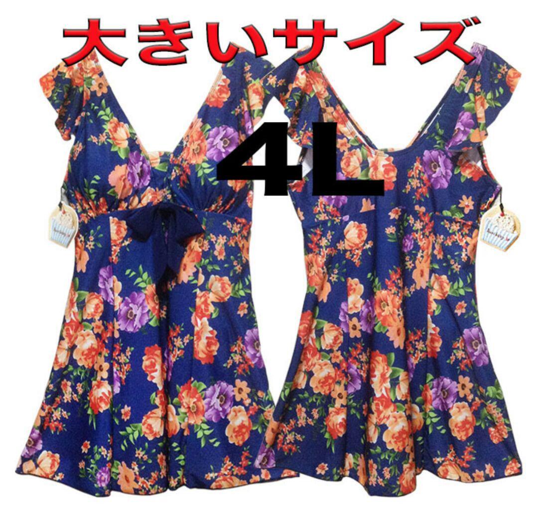 - 新品 4L 大きいサイズ レディース☆ワンピース水着 ネイビー色