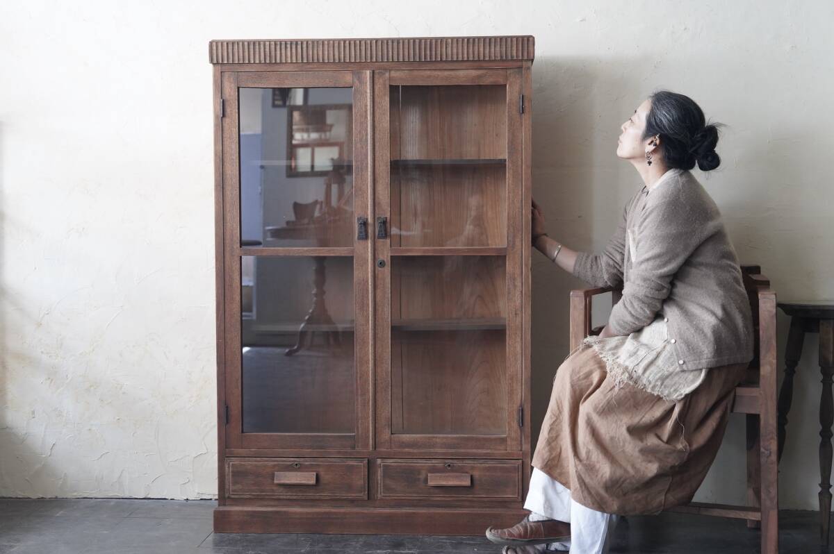 - ガラス棚 食器棚 ヴィンテージ アンティーク 飾り棚 ディスプレイ 古家具 古道具 ヴィンテージ家具 インテリア 古木 アンティーク家具