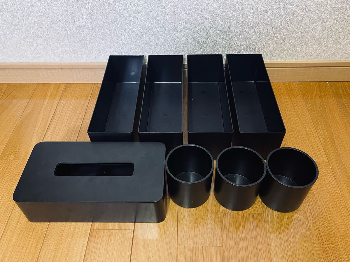 - 黒小物入れ 色々 ペン立て ティッシュケース ブラック スタンド ケース 引き出し小分けに デスク周辺整理 断捨離 アクセサリー 筆記具