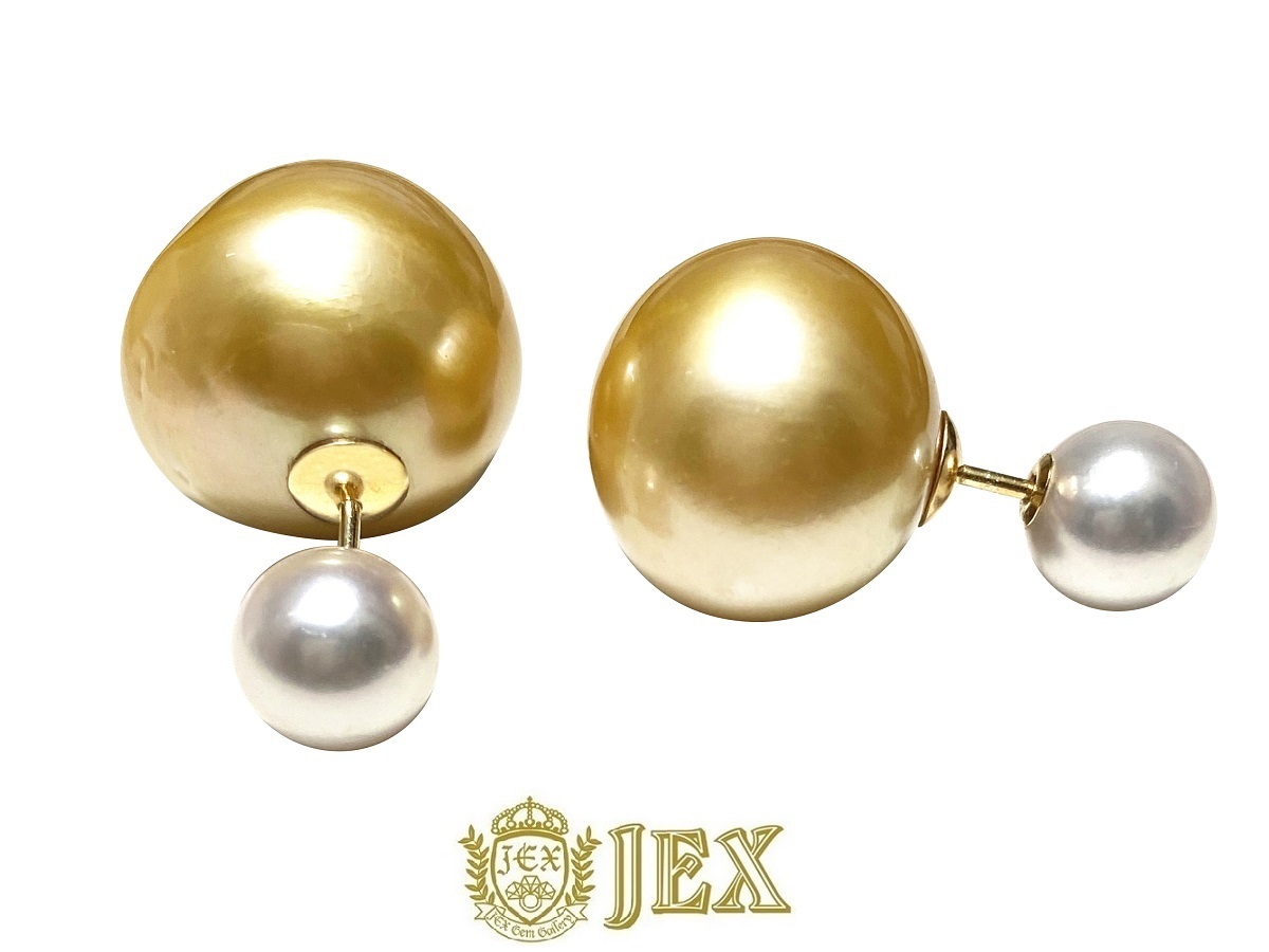 - South Sea Pearl K18白蝶パール ゴールド系 アコヤパールピアス NO.128589