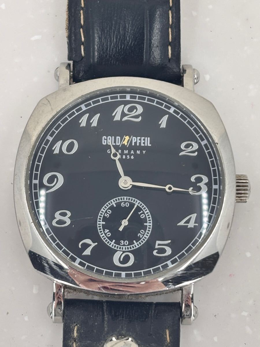 > ゴールドファイル GOLD PFEIL メンズ シルバー G41002 SS 腕時計 クッションケース スモセコ メガネ針 不動