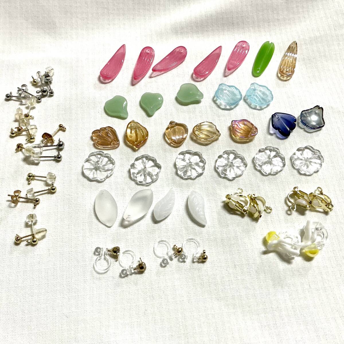 - アクセサリーパーツ イヤリング ピアス パーツ ガラスビーズ 花 植物 樹脂 金属 メタル ピアスパーツ イヤリングパーツ 詰め合わせ 福袋