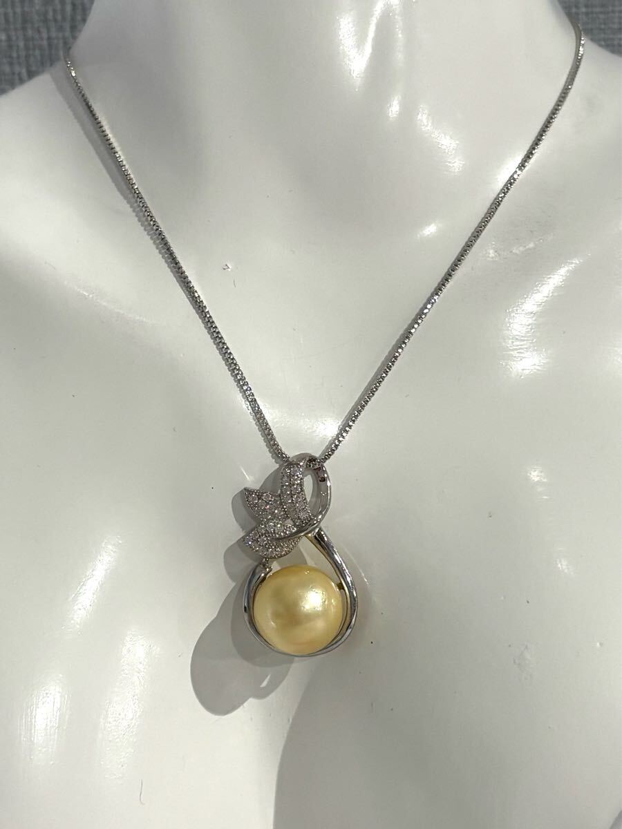 - 白蝶パール 南洋白蝶真珠 ゴールデンパールペンダント新品 (N608)