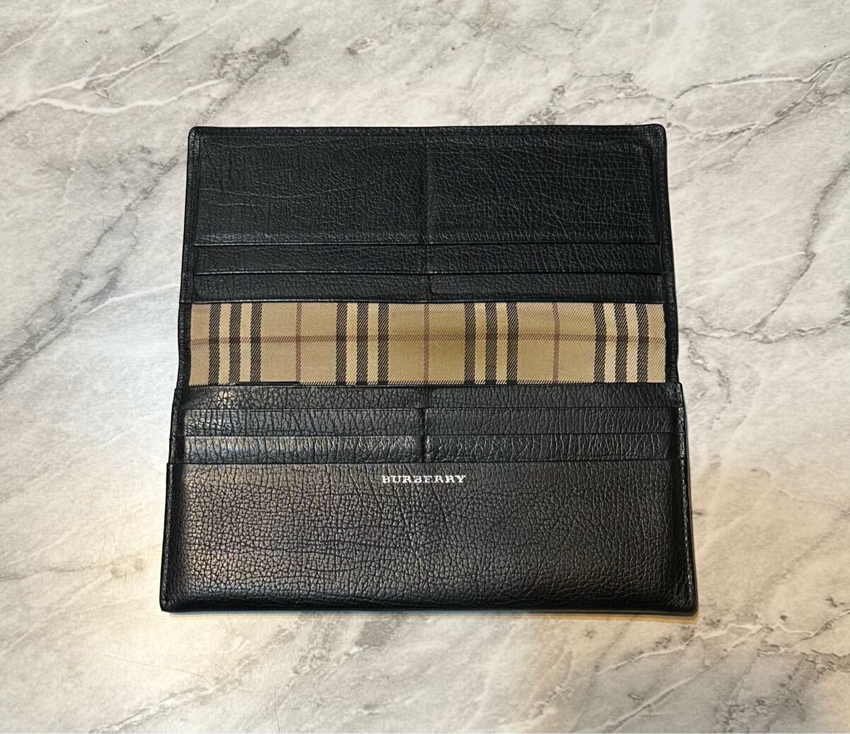 - バーバリー ノバチェック シボ革 シュリンクレザー 長財布 ブラック