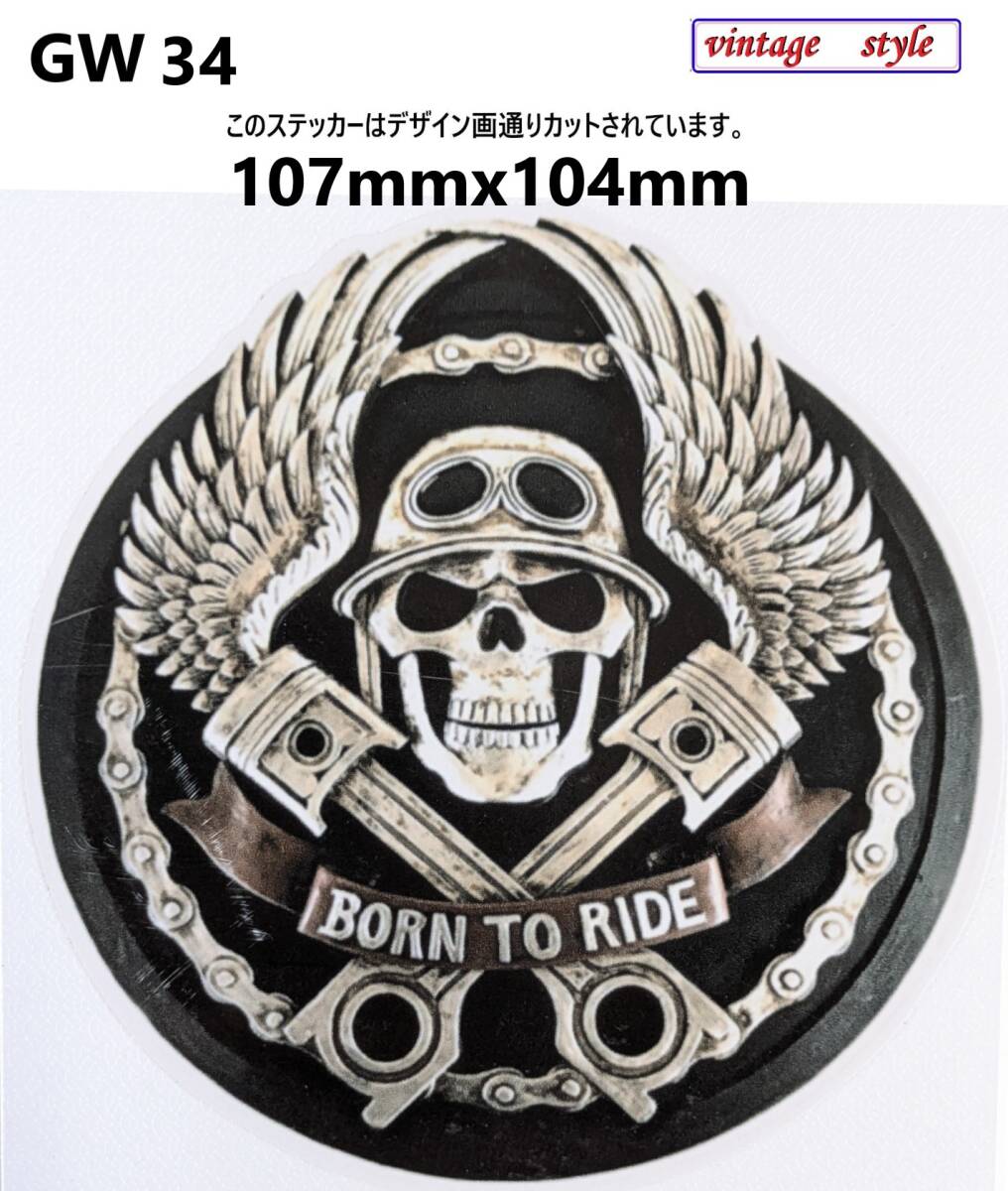 > GW34-7 特価 ヴィンテージスタイル BORN TO RIDE スカルステッカー 骸骨ステッカー ヘルメット ハーレー ピストン 翼 カッコいい