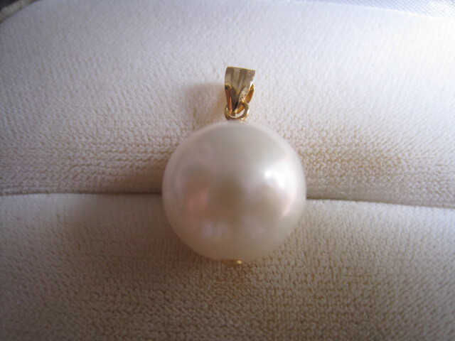 - [SAMU]照り綺麗!!大玉天然南洋白蝶真珠13.5mm k18金ペンダント 美品!