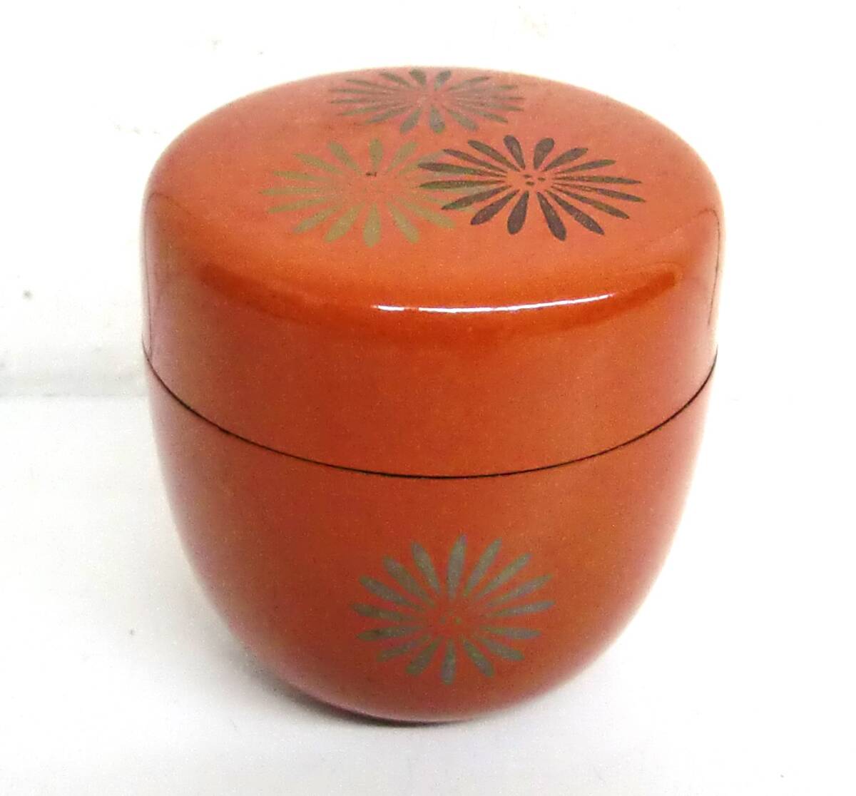 - 伝統工芸 工芸品 工芸美術 *棗 なつめ *朱漆塗 内黒 *菊紋 *茶道 茶道具 茶器 *骨董 古美術