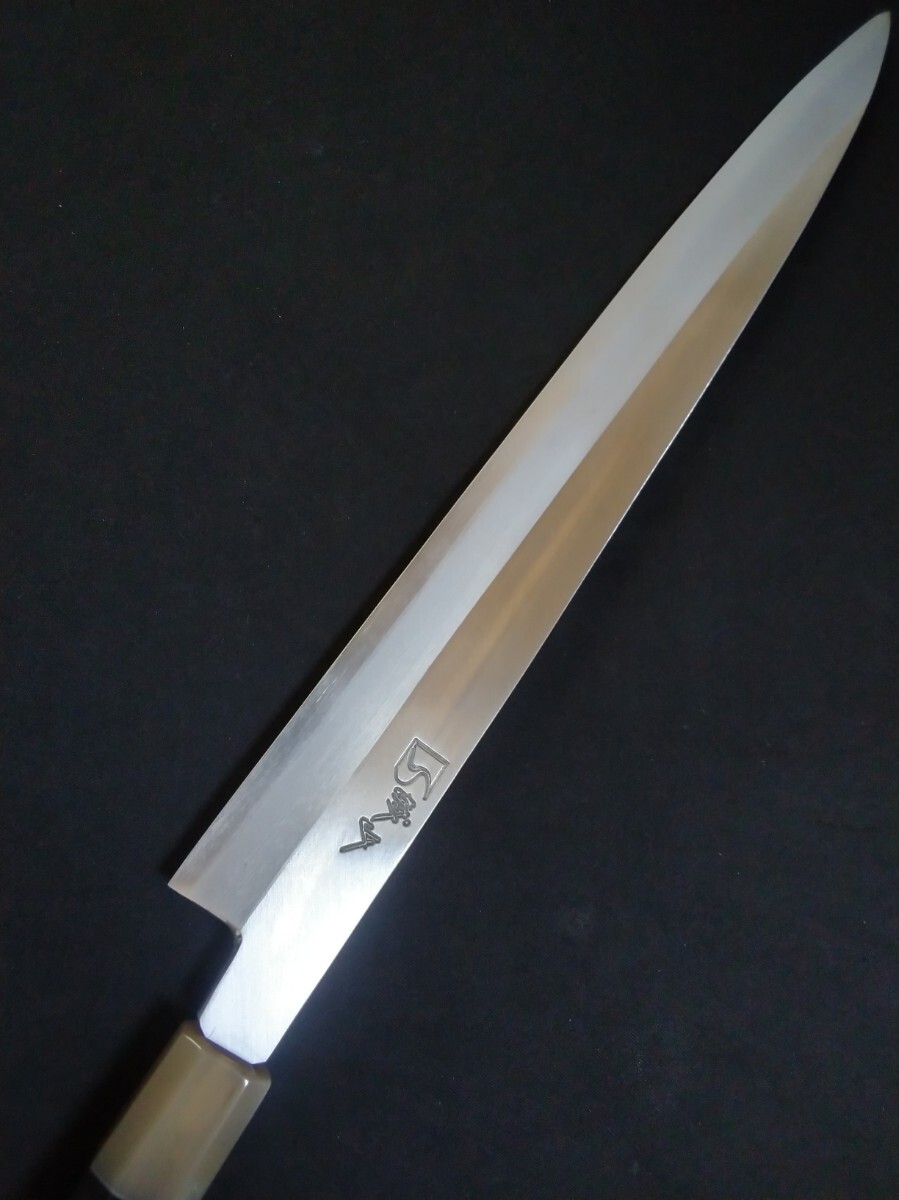 - 城山刃物製作所(堺業務用刃物メーカー直売)尺一柳刃(左用)銀三鋼 木戸仕上げ 表城山刻印入り 黒檀八角水牛柄