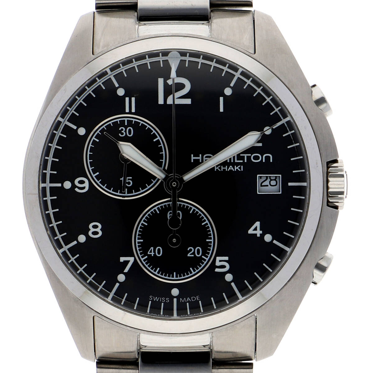 - HAMILTON ハミルトン H76512133 カーキ パイロット パイオニア クロノ ブラックダイヤル SS クオーツ メンズ【128958】