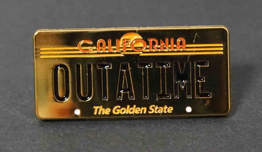 - 《金車プレート風OUTA TIME》未来『BACK TO THE FUTURE』バック・トゥ・ザ・フューチャー■映画ムービー アメリカ■ 金属ピンバッジ バッチ