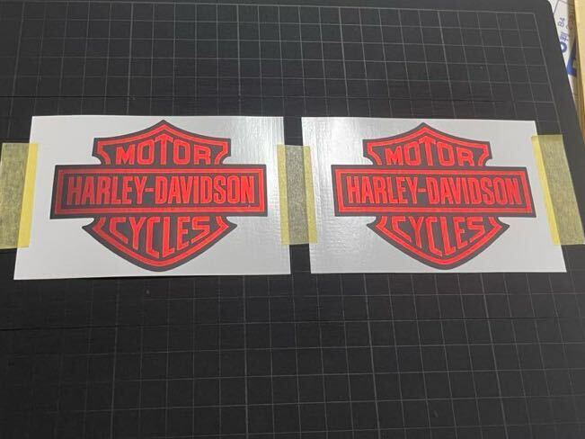 > ハーレー純正タイプ バー&シールド 背面艶消し黒×文字赤箔×防水艶消し仕上げ 90mm×68mm 2枚1セット③ レッドリーフ