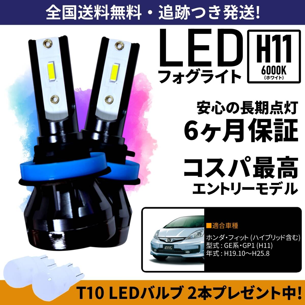 - 【送料無料】ホンダ フィット GE系 GE6 GE7 GE8 GE9 GP1 LED フォグライト フォグランプ H11 ホワイト 6000K 保証付き