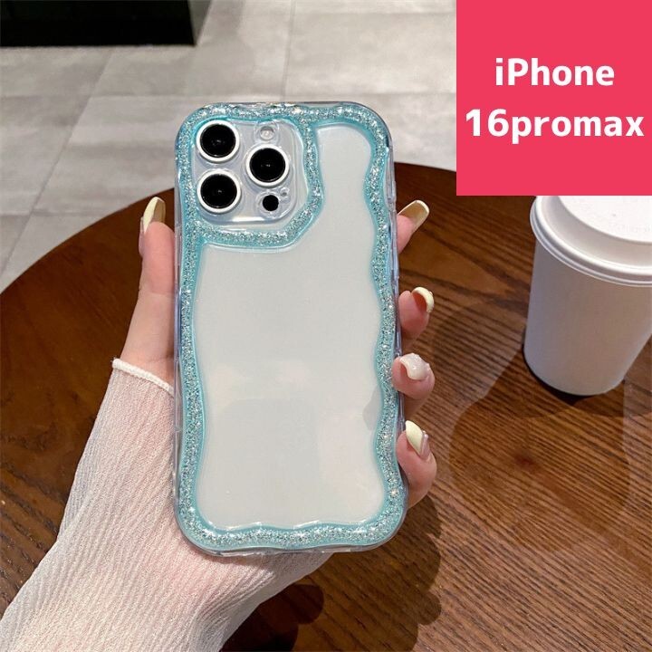 > iPhone16promax ケース カバー 青 うねうね 可愛い ラメ 人気