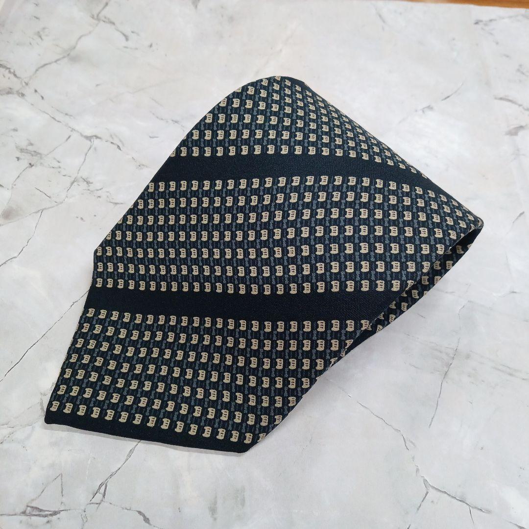 - ジョルジオアルマーニ ネクタイ 黒 ベージュ ストライ柄 絹【n1084】