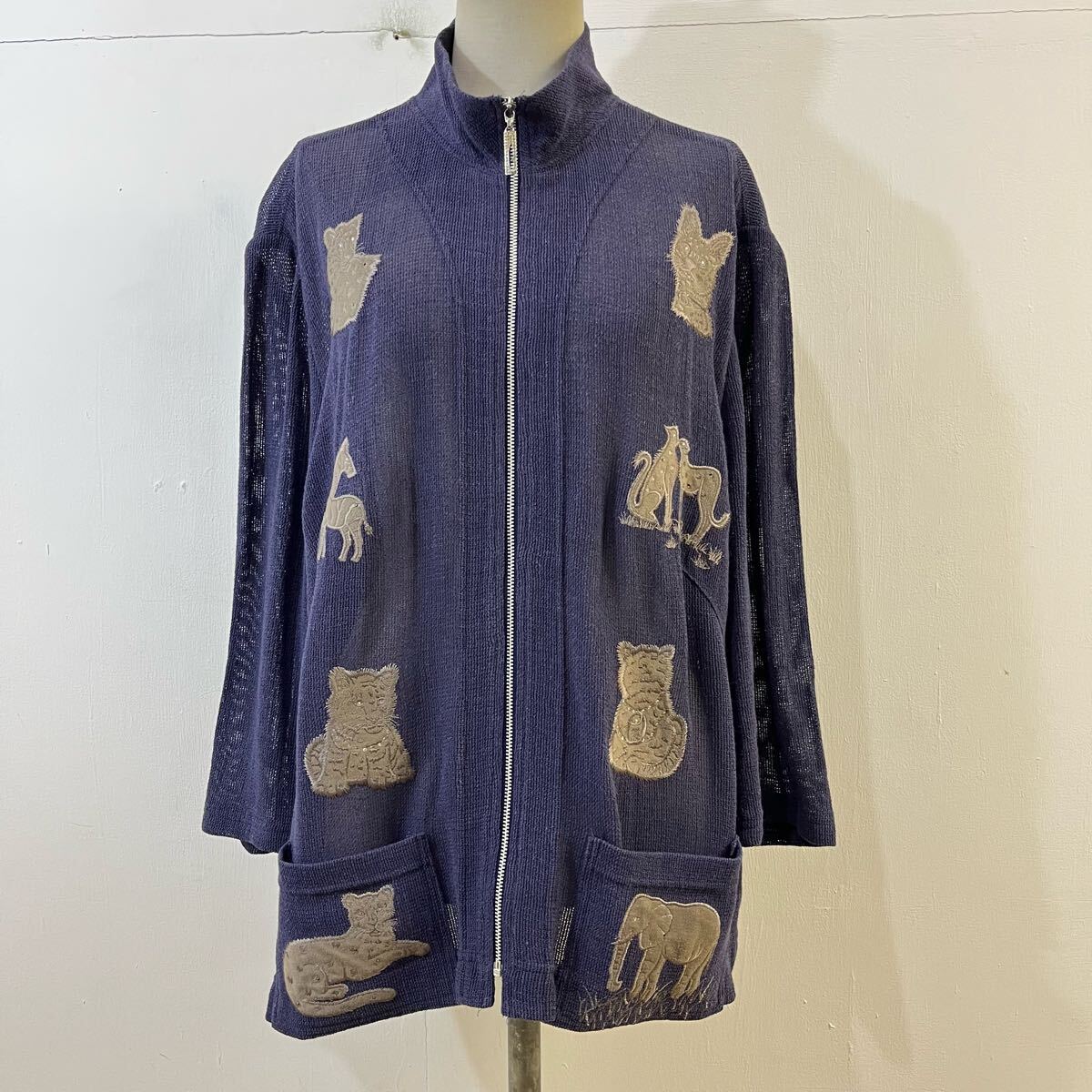 - 伊太利屋 リネンジャケット ジップアップジャケット ブルゾン アニマル刺繍 ハイネック イタリヤ GKITALIYA【レターパックプラス郵送可】Q