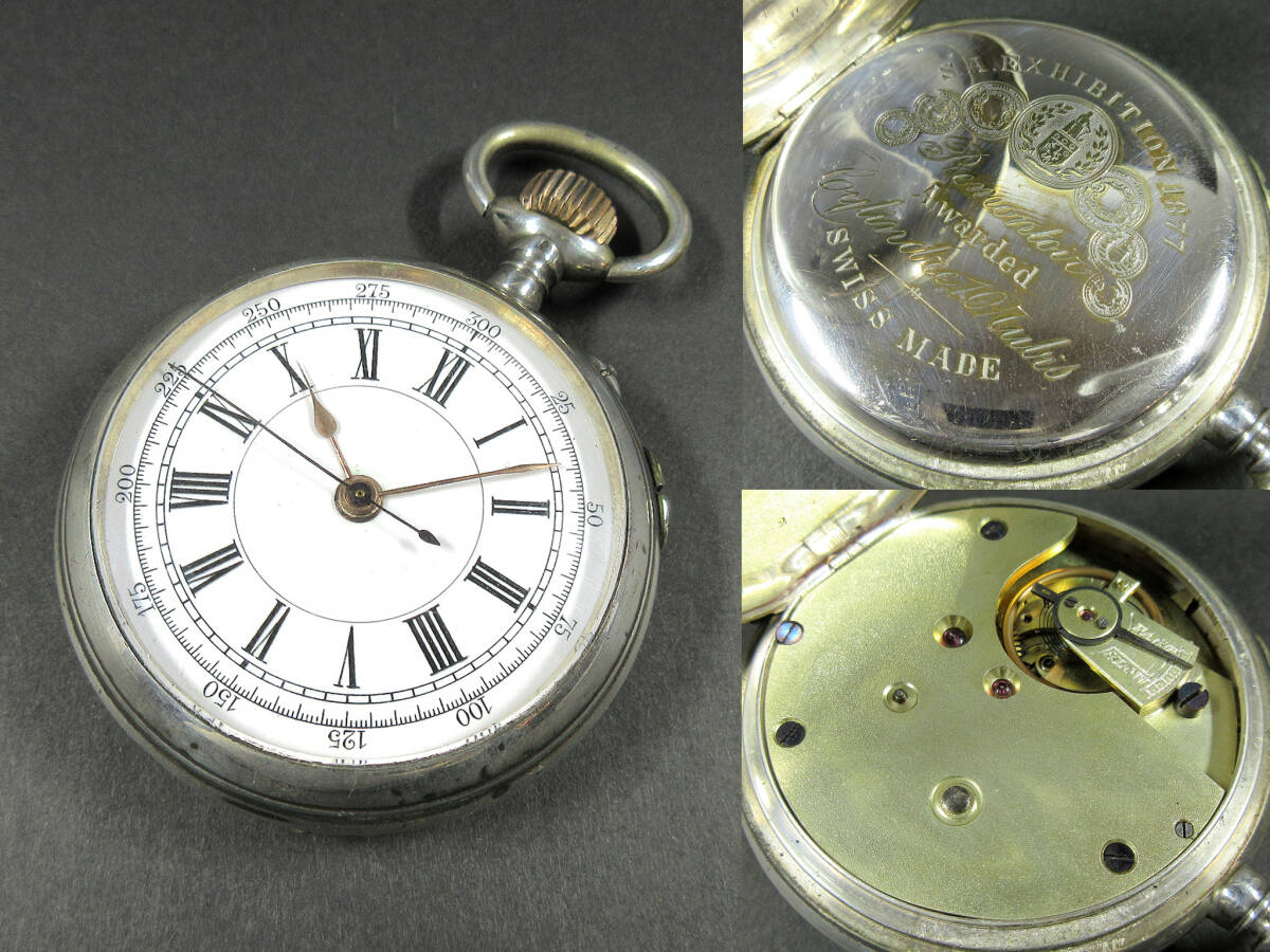 > 稀少 S.A.EXHIBITLON 1877 REMONTOIR AWARDED アンティーク 銀製 ホワイトポーセリン 55mmケース 手巻 ドクターズウォッチ 懐中時計