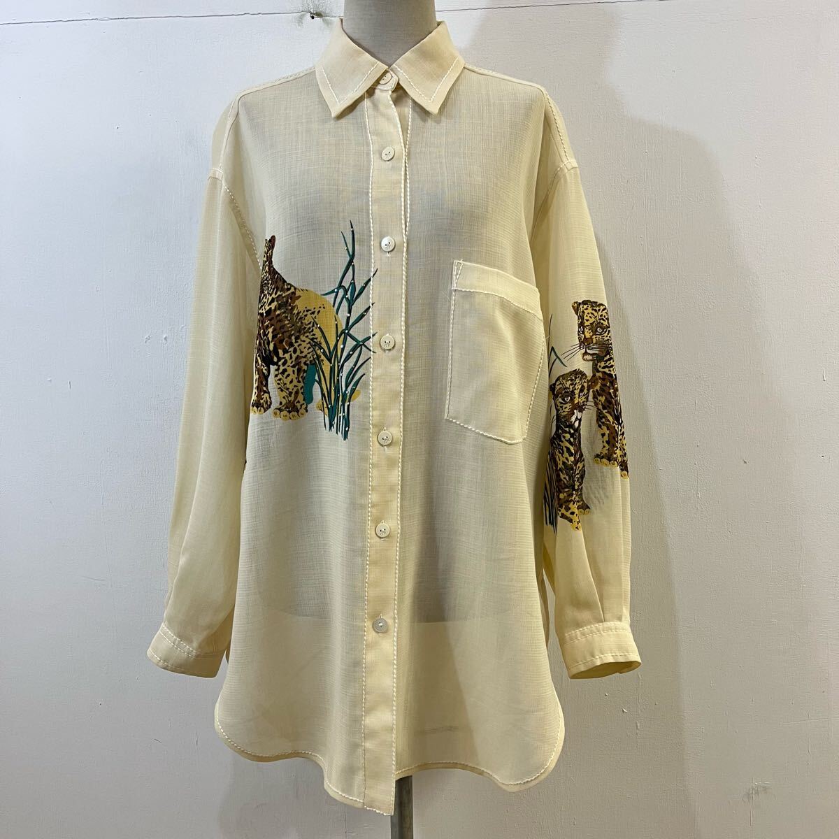 > 伊太利屋 ウールシャツ アニマル柄 ステッチデザイン 豹柄 ヒョウ柄 プリント 長袖 希少 イタリヤ GKITALIYA【レターパックプラス郵送可】K