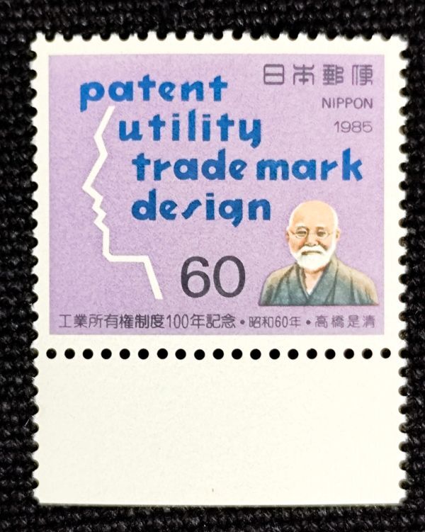 - [25040931]【工業所有権制度100年】単片「横顔と制度の柱の英枠と高橋是清」60円 1985年発行 美品