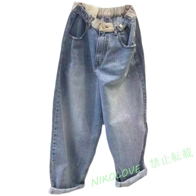 - 新品 デニムパンツ デニム ジーンズ 大きいサイズ 九分丈 ウエストゴム サルエルパンツ レディース 可愛い 体型カバー 春 秋 冬