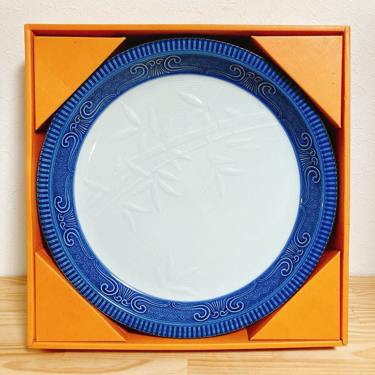 - 【中古】有田焼 皿鉢 さわち皿 萬泉 大皿 36cm 箱入り 竹柄 染付 宴会 パーティー 和食器 年代物★A2504-0099