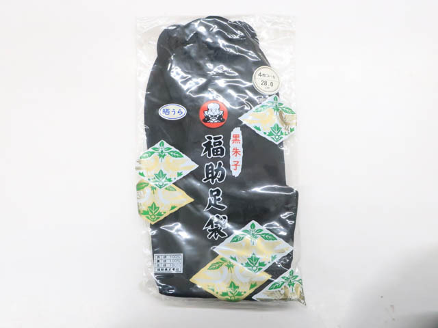 - 《古美術京松》【着物】 和装小物 男物 足袋 福助足袋 黒朱子 4枚コハゼ 約28cm r7w02-345