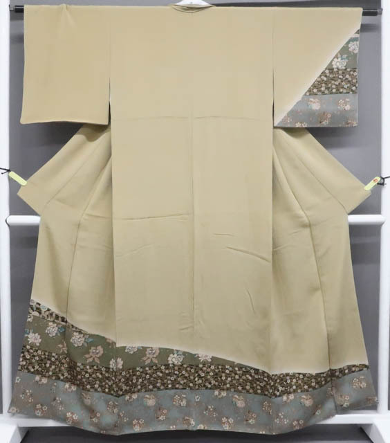 > 《古美術京松》【着物】付下げ ちりめん 流水に花・萩文 身丈約160cm 裄丈約62cm r7z02-136