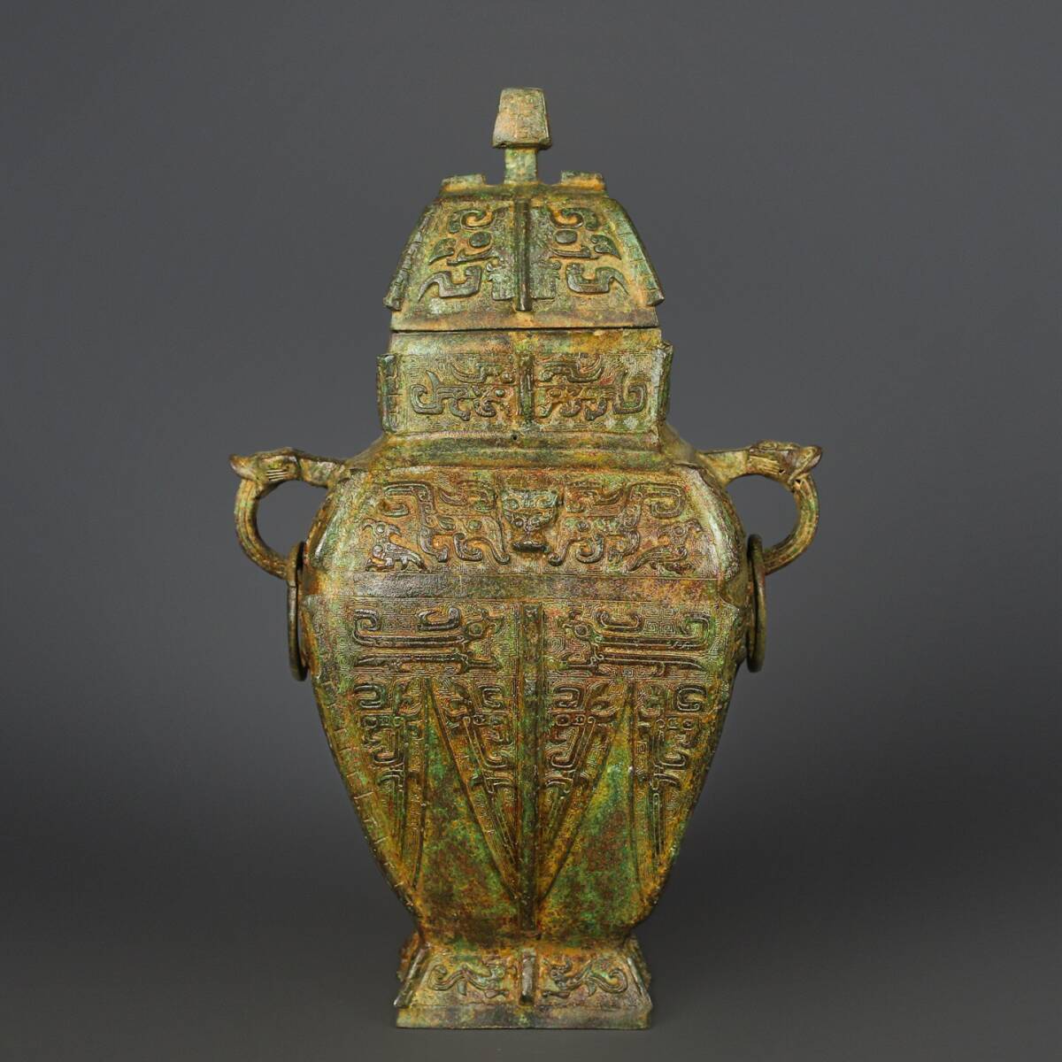 - 【超珍館蔵】西周 青銅製 方罍 青銅器 置物 古賞物 古美術品 稀少珍蔵品