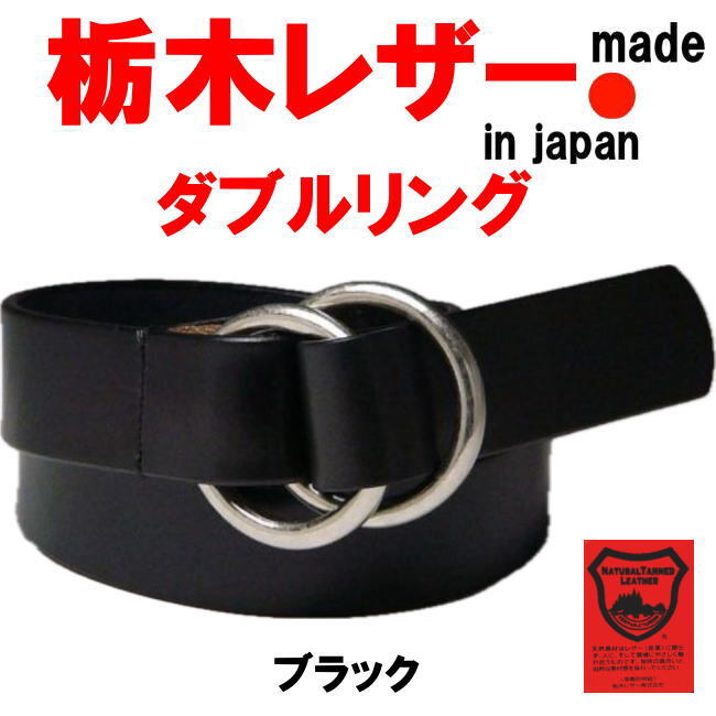 - ブラック 栃木レザー 肉厚 日本製 本革 ヌメ革 ダブルリング 40mm メンズ レディース