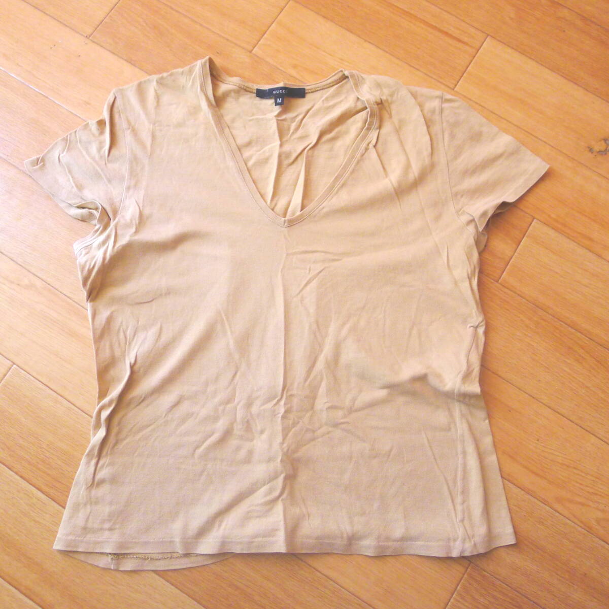 - *〜GUCCI*グッチ*Vネック*バックロゴ*半袖Tシャツ*ベージュ*sizeM〜*