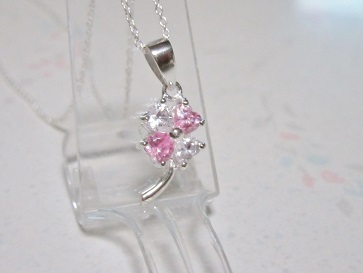 - ★可愛いピンク・ホワイトの四つ葉のクローバー・シルバーネックレス