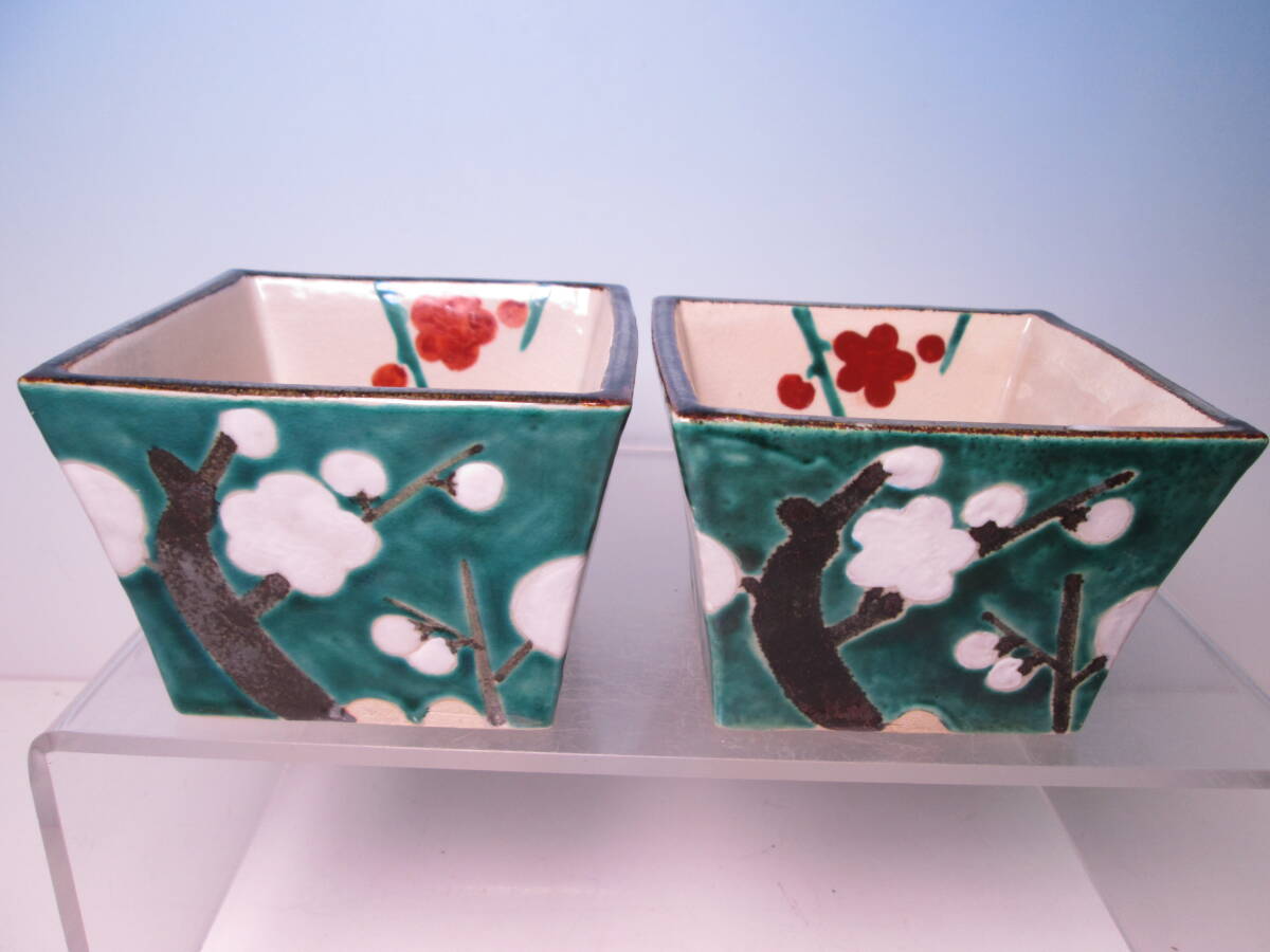 - ☆お料理屋さんの器 在印 乾山写し 紅白梅花文 向付 二客 小鉢/茶懐石/割烹/日本料理