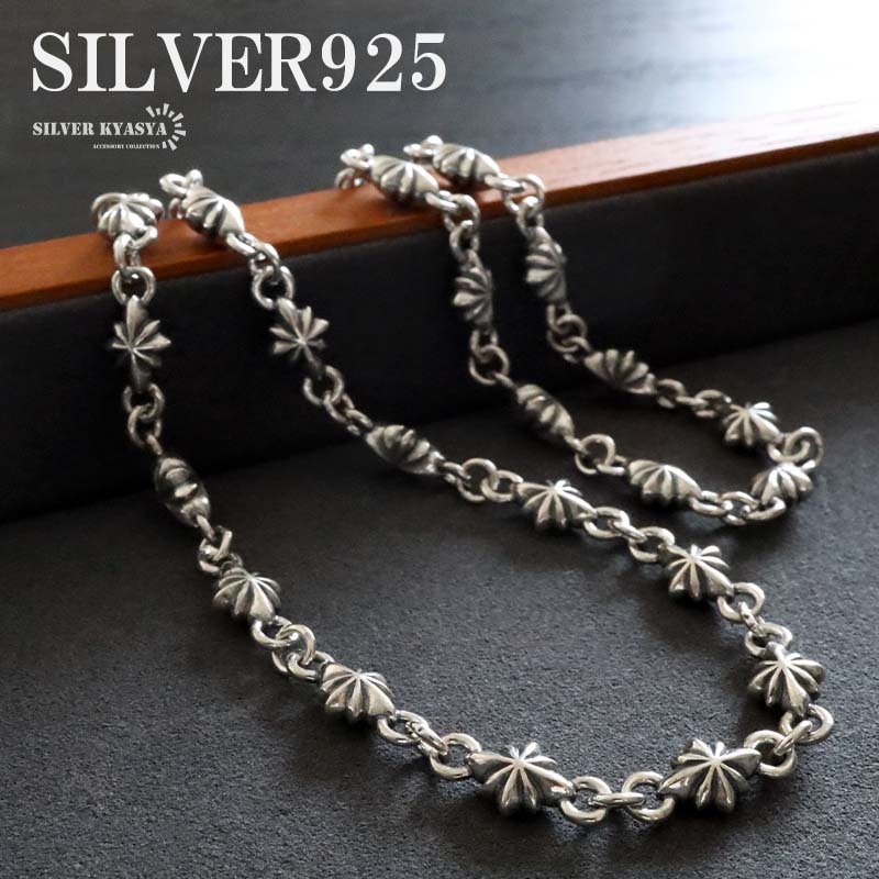 - シルバー925 チェーンネックレス スターネックレス 星粒 デザインチェーン メタル 男性 メンズ 金アレ対応