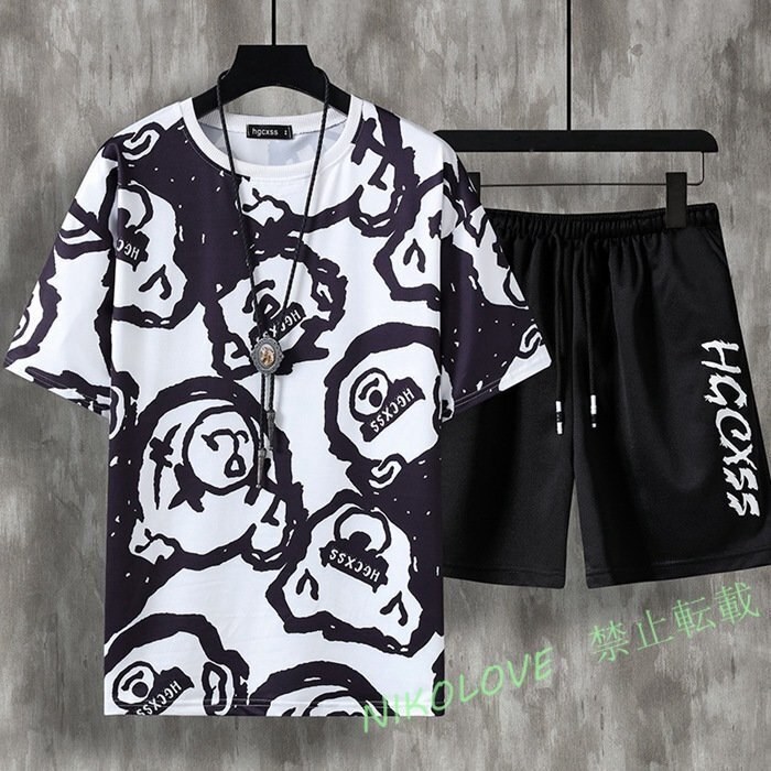 - 新品 セットアップ 上下セット 半袖 スポーツウェア メンズ Tシャツ ショートパンツ トレーニングウェア 涼しい 通気性 吸汗速乾 L~5XL
