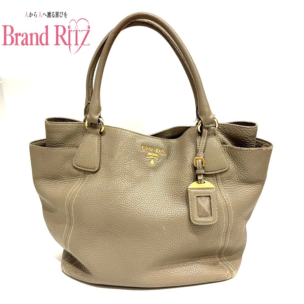 - 中古 プラダ ハンドバッグ Bランク レザー ロゴ ゴールド グレー レディース PRADA【送料無料】【名谷店】